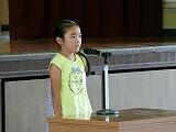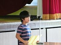 まず、2・4・6年生の代表の児童が、2学期の目標の作文発表を行いました。学習や運動、生活等で頑張りたいこと、将来つきたい仕事のために頑張りたいこと等、しっかりと発表することができました。