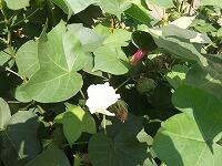 何の花かお分かりですか?そう、綿の花です。咲き終わると、きれいなピンク色にしぼむようです。実もできてきました。近くには、ひょうたんも実っています。体育館の前にありますので、いらした時にはぜひご覧ください。
