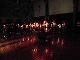 杉板をみがき、きれいな 火の神様から友情の火を なかよしのつどいには、多くの先生