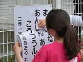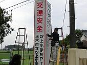 児童が作った交通安全標語を、南側フェンスにPTA交通安全委員会が中心となって掲示しました。各学年6点の作品が選ばれ、一年間掲示されます。標語は、学校だよりで紹介します。