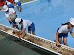 運動会が終わり、晴天の今日はプール清掃です。若手の教員が、日曜日の午後にざっくりと第一弾の清掃を行いました。今日は5・6年生総がかりで仕上げまで磨きます。1年間の埃がたまっているので、大変です。
