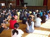 校長先生が不在のため、教頭先生のお話と星野先生からのお話、そして、スポーツ委員会の児童からプールの約束の話がありました。
