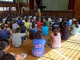 教頭先生が「おじいさんのランプ」(新美南吉)前半を、全校生に読み聞かせました。