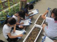 今日の5時間目の生活科では観察をして、カードに絵を描き、気付いたことを文章で記入ししました。