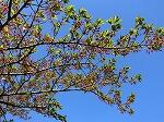 入学式まで花をもたせていた桜ですが、昨日、今日の強風でずいぶん花が散り、その後に新しい葉が伸びてきました。