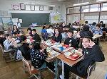 6年生は、下級生といっしょに給食を食べる「ふれあい給食」で、思いでづくりをしました。