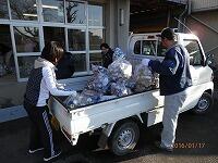 日曜日のリサイクル品回収の延長で、アルミ缶の回収が行われました。校舎内に運んでいただいたアルミ缶を「昭和アルミ」さんに運んでもらいました。