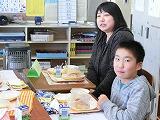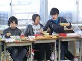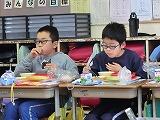6年教室でのふれあい(招待)給食 山市先生 三浦先生 普段は職員室で食べている二人です。