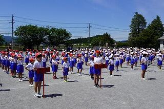 今日の運動会全体練習は開会式とラジオ体操の練習でした。開会式の練習では、担当する6年生のきびきびした動きでスムーズに進めることができました。ラジオ体操の練習では、6年生の指揮者に合わせて全校生が体を動かしていました。