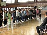 クリスマスを前に、人気ソングを紹介し、みんなでジングルベルを歌いました。合唱部のリードでの全校合唱です。