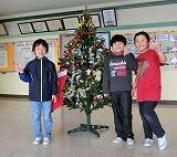 今日、東昇降口にツリーが登場しました。子どもたちより大きなツリー、「長さ」の学習をしている2年生と測ってみると、176cmでした。