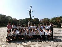 みんなで噴水の銅像の前で記念写真を撮りました。