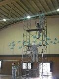 今日は、電気工事業者により、水銀電球の交換が行われました。これで、夜のスポーツも明るくできます。