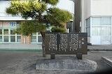 正面玄関前の植え込み内にある「よく学び よく遊べ」ブロンズ像。
