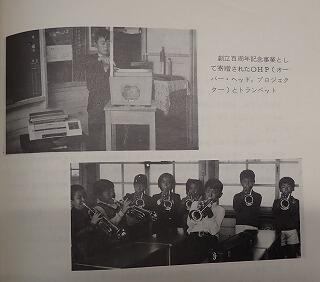 100周年記念品は、トランペット8台、テント1張、OHP4台、アナザイザー1台、謄写ファックス1台、トラペンアップ1台、記念樹、記念碑
