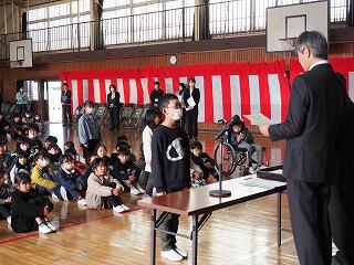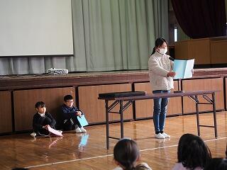 本日修了式が行われました。校長先生から修了証が各学級の代表者に渡されました。次に1年生・3年生・5年生の代表が1年間を振り返る作文を発表しました。3名とも今年度頑張ったことを中心に作文を読むことができました。校長先生のお話がありました。年度初めに提示した笑顔あふれる吹上小についての総括がありました。最後に児童指導主任から「春休みの安全な過ごし方」についてのお話がありました。