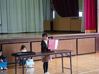 書初展の特選者を代表して表彰を受けました 入賞した児童は名前を呼ばれてその場に立ちました