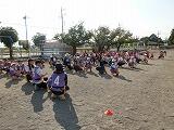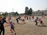 20m四方のコートで、保護者の方対子どもたちでタグを取り合いました。2分間、タグを取ろうと全力で動きました。