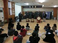 2月5日(水)3・4校時には、野中町お囃子保存会の方5名に来ていただきました。先輩方からずっと受け継いでこられたというお囃子をきかせていただいたり、お話を聞かせていただいたりしました。また、実際に楽器を演奏させていただき、充実した時間を過ごすことができました。太鼓や鐘を初めて演奏した子も多く、貴重な体験となりました。