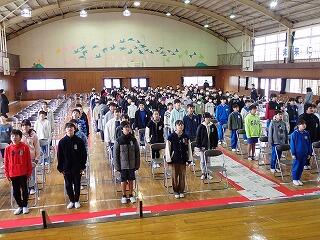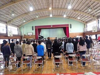 本日卒業式予行が行われました。卒業式と同じ流れで行いました。卒業証書授与・はなむけの言葉・別れの言葉・卒業生全員での「絆」の斉唱等、緊張感をもった練習をすることができました。