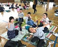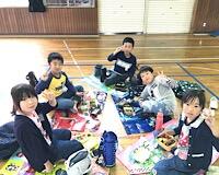 お昼ご飯は、雨のため緑地公園でなく、学校の体育館で食べました。