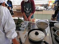 1食分の献立を考える学習です。主菜になる「野菜のベーコン巻き」と副菜になる「青菜とちくわのごま風味和え」を作ってみました。ゆでる、炒める調理の総まとめにもなります。