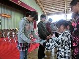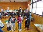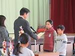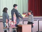 また、在校生から6年生に、メッセージカードといとひばくんのプレゼントをしました。