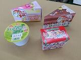 ハンバーグ、クリームスープ、サラダ ケーキは:チョコ、いちご、マスカットゼリー(四角はアレルギー食)