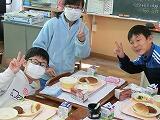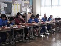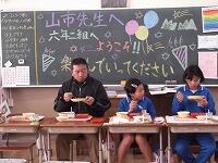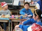 全学級で会食会が開かれ、児童とボランティアの皆さんが一緒に給食(メイン:焼きそば)をいただきました。
