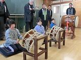 児童たちは朗々とした語りと琵琶の音色に耳を澄ませていました。