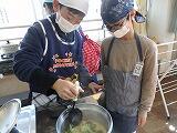 グループの友達と協力をして、おいしいご飯とみそ汁を作ることができました。振り返りでは、「ご飯は火加減と水の調節が大切だと分かった。」「みそ汁は、具材の切り方や入れる順番を考えなくちゃいけないことが分かった。」などと書いてあり、ご飯とみそ汁の作り方について学ぶことができました。