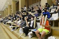 本日の全体練習は、雨天のため体育館で実施した閉会式の流れを練習しました。
