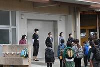 今朝は、薄曇りの中、5年生が一足先に、その他の学年はいつもどおりに登校してきました。