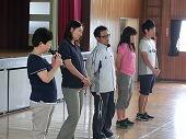 美化委員会はぞうきんの片付け方やぞうきんの拭き掃除の仕方を実演しました。