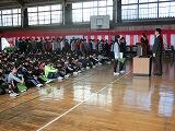 校長先生の話を聞く4年生、5年生の様子です。