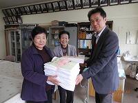 今日は、栃木地区交通安全協会吹上支部女性部会の皆様が、新入生用のランドセルカバーと交通事故防止の冊子等をお届けくださいました。たいへんありがとうございました。入学式に配布させていただきます。