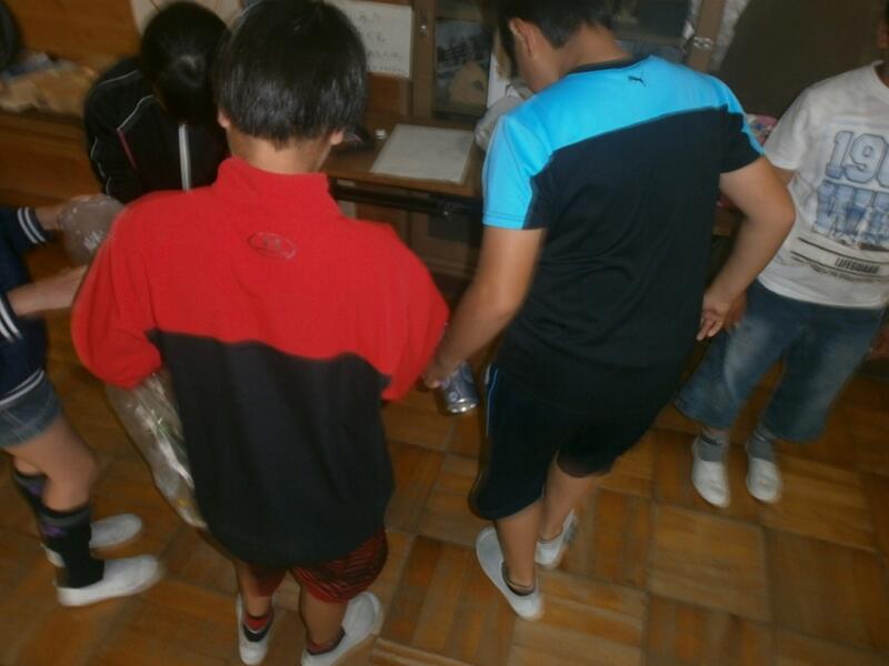 救護、接待係がリボンの準備です。 合図係は、担当の分担です。