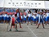 1年生と2年生が、リズムに合わせてポンポンをふりながら元気いっぱい踊りました。