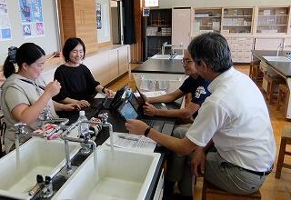 情報教育研修 タブレット端末を使い、児童に課題を配付する方法やプログラミングソフトを使う方法について、実際に操作することで技能を高めました。これらの研修成果を2学期からの児童への指導に活用していきたいと思います。