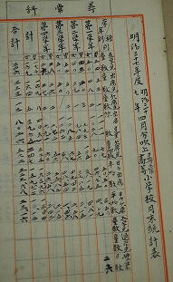明治37年度の文書ですが、保存状態はきわめて良好でした。明治37年度では尋常小学校は4年生までであることがわかります。児童数は尋常科346名でした。高等小学校も4年生までありました。高等科の児童数は217名でした。