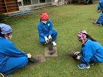 お昼の後は、楽しみにしていた杉板焼きをやりました。自然の家の先生の説明を聞き、グループごとに協力して活動していました。焼いた杉板をたわしや魔法の布で一生懸命こすっていた子どもたちの顔は、真っ黒になっていました。