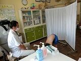 聴診器で、肺や心臓の様子を診ていただ後は、側わん検査(写真左)をしていただきました。検診終了後は、成長曲線から、身長の伸び方の様子をチェックしていただきました。(写真中央)