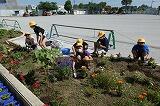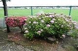 体育館南側では、サツキが色鮮やかな花を咲かせています。