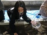 1つ目のコーナーは、「宝探しゲーム」です。手作りの砂場の中に埋められている宝石(鉱石)を掘り出していきます。