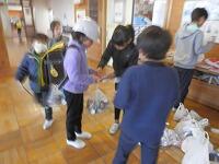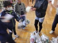 毎月、第1・第3週の木・金曜日が基本の回収日です。児童が家から持てるだけ袋に入れて持ってきたアルミ缶を、ボランティア委員会の児童が大きな袋に回収します。ポイントカードを発行するなど、工夫して活動していました。