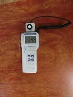 照度計で、児童の机上と黒板9カ所を測定しました。すべての箇所がLED蛍光灯が入っているので、300ルクスを超え、みごと合格でした。