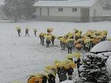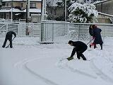 校舎北側の職員駐車場は吹きだまりのせいか、20センチ近くの積雪があり、さらに溶けにくいので皆で雪かきをしました。