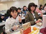 1回のおやつの適量であるポテトチップス35グラムを両手に乗せてみたり、班ごとにクイズに答えてみたりと、楽しく学習しました。