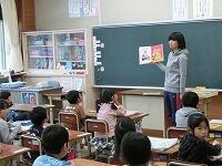 今日は、教頭先生とイスマエル先生(ALT)が、エリック=カール著「くまさん くまさん なにみてるの?」と「Brown Bear, Brown Bear, What Do You See?」をそれぞれよみきかせしてくださいました。その後は、図書室にある英語の絵本をみながら、どんな本があるかな?と、お話しました。