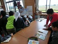 午前中は火おこしと杉板焼きを行いました。火おこしでは、道具の使い方を自分たちで考えました。道具の使い方が難しかったのですが、火をおこせた班もありました。